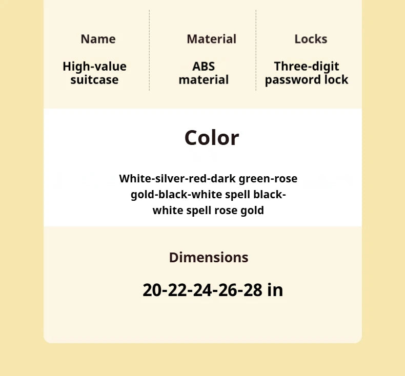 - Material: Premium ABS/PC hardshell with scratch-resistant finish