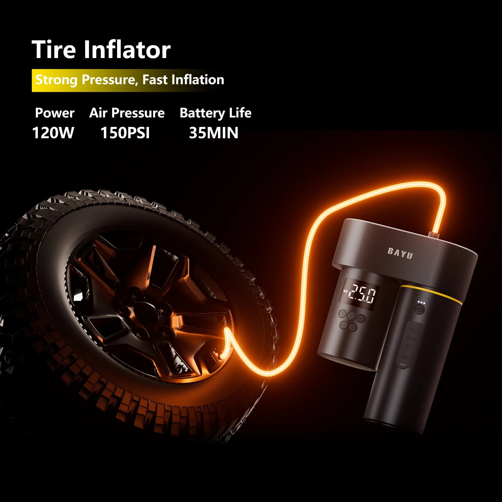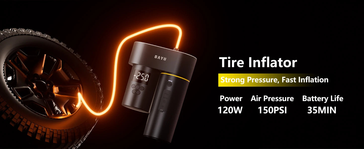 150 PSI tyre inflator and 200 PSI cordless washer