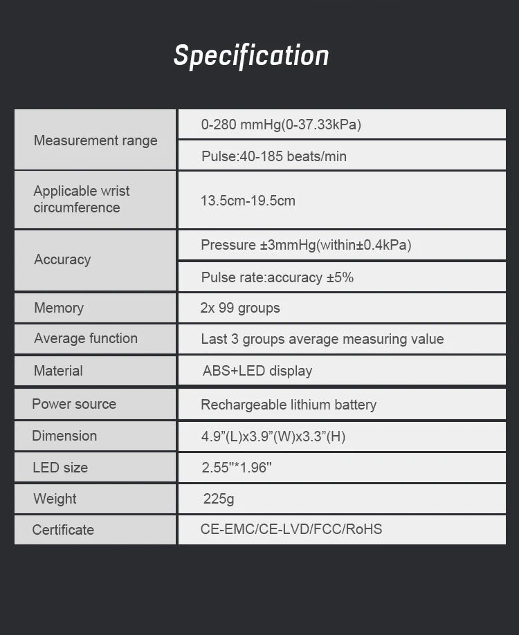 Take control of your cardiovascular health with the HeartTrack Smart, an advanced digital wrist blood pressure monitor designed for accurate, convenient, and reliable health monitoring at home or on the go. This sleek, portable device combines cutting-edge technology with user-friendly design, making it easier than ever to track your blood pressure and maintain optimal heart health.