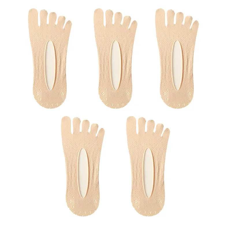 SilkStep Breeze delivers effortless comfort with its ultra-thin, breathable design that keeps feet cool and dry all day. The five-toe shape offers a natural fit, while the transparent finish adds an elegant touch to any look.