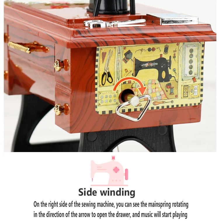 StitchTune Box brings timeless charm into any space with its enchanting mini sewing machine design. This hand-cranked music box plays a soft, classic melody, blending vintage beauty with nostalgic warmth. More than decoration, it also serves as a delicate jewellery box to keep your small treasures safe.